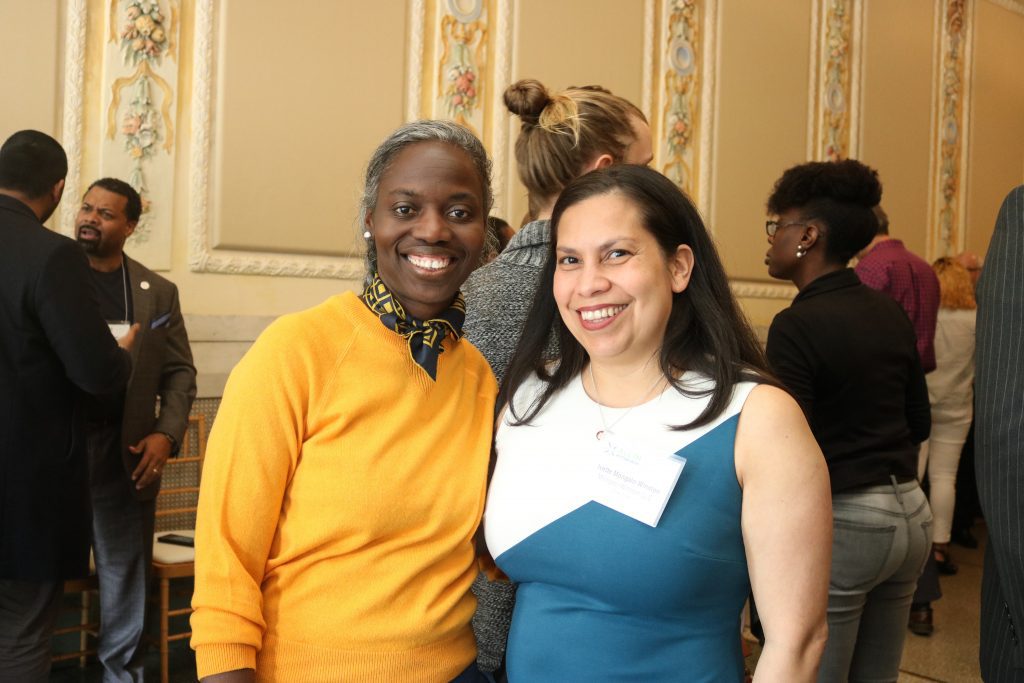 More than 100 guests gathered in the lobby of the Kelly Strayhorn Theater to mark an important milestone for the All-In Pittsburgh Equitable Development Collaborative – its two year anniversary. Community members, city leaders, and nonprofit professionals joined together to celebrate accomplishments, discuss new projects in equitable development, network, and enjoy lunch provided by Chef Claudy Pierre of Emiment Hospitality Solutions Co. The program included words of support and inspiration from several coaltion members, partners and supporters, including Mayor William Peduto, Malik Bankston of the Kingsley Association, Jasiri X of 1Hood Media, Janera Solomon of the Kelly Strayhorn Theater, Maxwell King of the Pittsburgh Foundation, Grant Oliphant of The Heinz Endowments, Betty Cruz of the Change Angency, Jamil Bey of the UrbanKind Institute, among others.